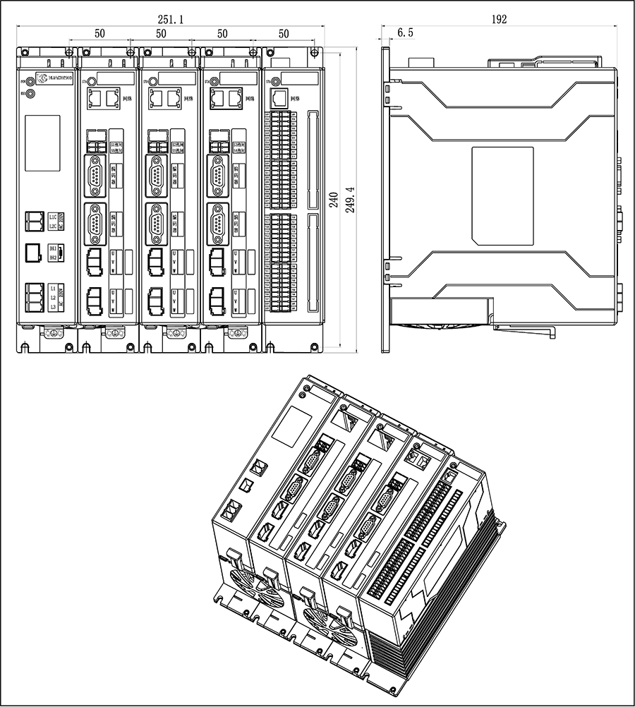 3)省略号处单元模块相同,系统轴数可选择2轴、3轴、4轴、5轴、6轴、7轴、8轴。端口连接方式相同。