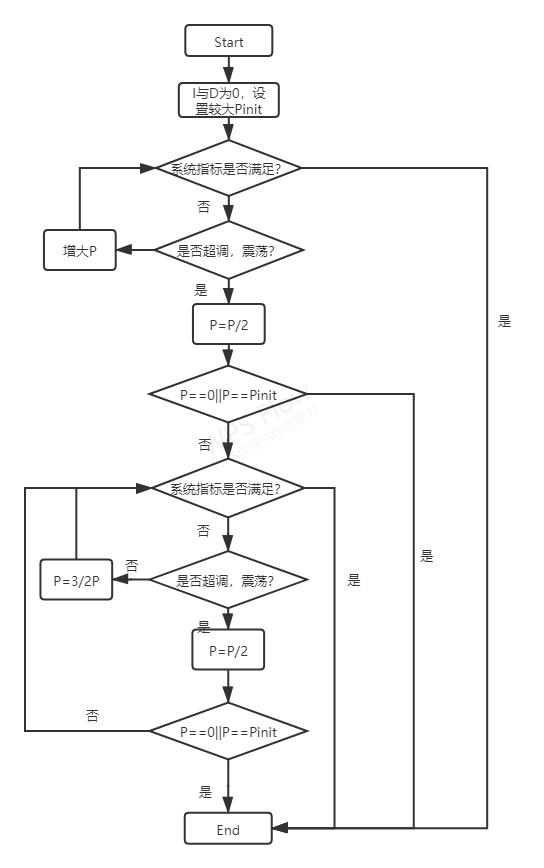 2. 系统震荡,P值调节大了,应较减小P值,直到振荡消失;调节完P后,你的系统的实际值也许会稍大于或小于你的期望值(可看作稳态误差) ,不用担心,下面的步骤会修复这点。