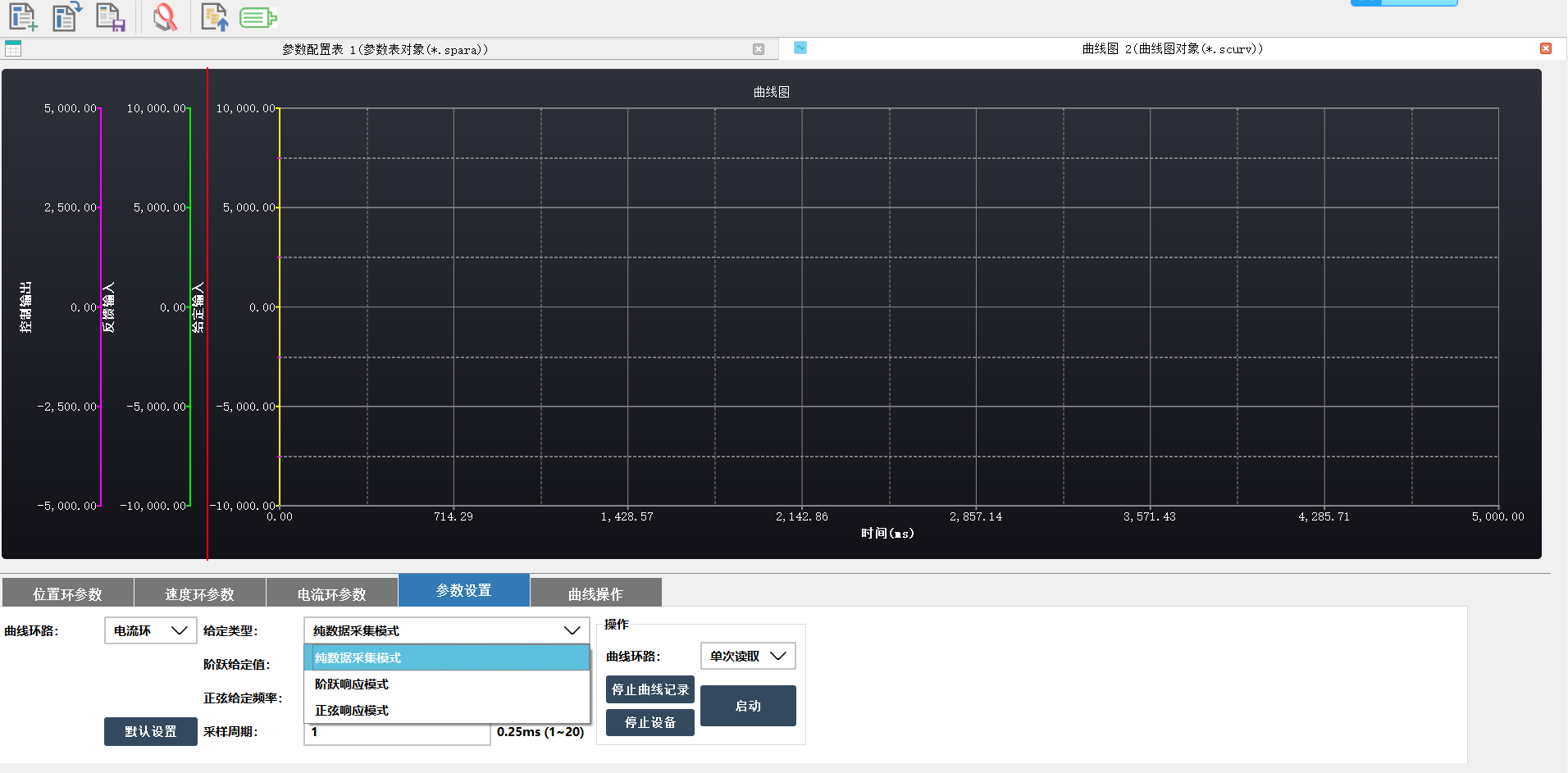阶跃响应:去使能后,将Pn10伺服模式设置为4,Pn61=100为转矩指令频率,使能。利用正弦响应得到的Pn65,Pn66,进行阶跃响应,观察波形,要求反馈不能超调,要求反馈不能滞后指令太多。指令幅值±1800,反馈幅值不能小于±1600。